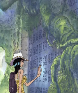 terhadap poneglyph. Namun dengan tanpa menghiraukannya, Nico Robin tetap
